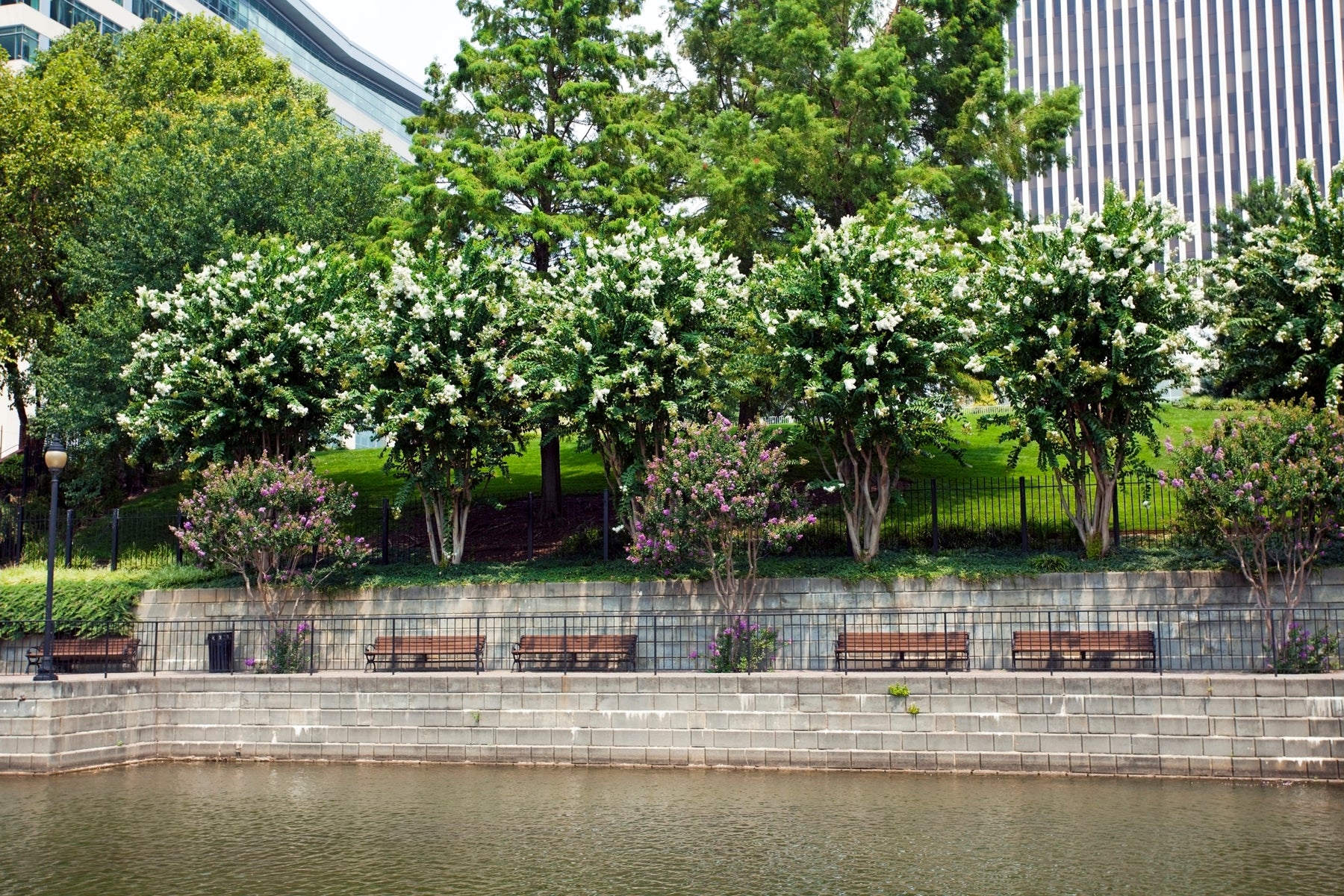 Natchez Crape Myrtle Tree is a large, deciduous flowering tree admired for its elegant form, long-lasting white blooms, and striking exfoliating bark. Blooming in summer, it produces abundant clusters of crisp white flowers that stand out against glossy green foliage. In fall, the leaves turn attractive shades of orange and red, while the smooth, cinnamon-colored bark provides winter interest. Highly resistant to powdery mildew and tolerant of heat and humidity, Natchez Crape Myrtle is an excellent choice for lawns, streetscapes, and large landscape settings.