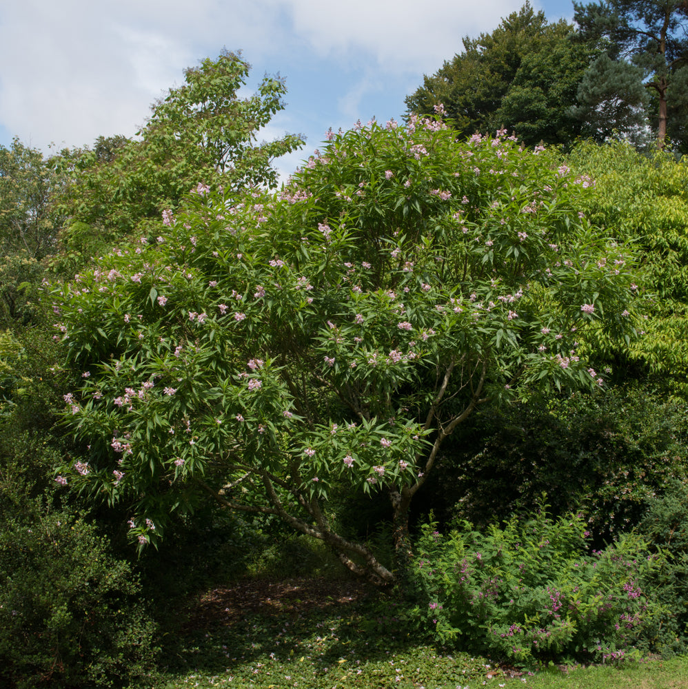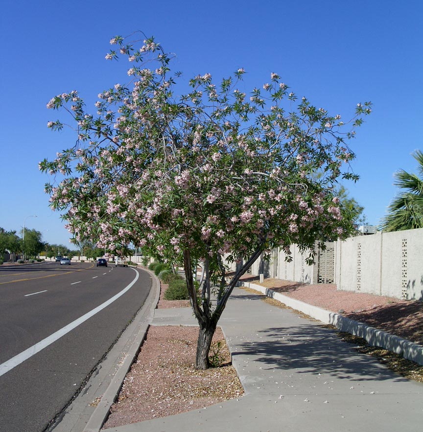Pink Dawn Chitalpa Tree is a graceful, deciduous flowering tree valued for its long-lasting display of soft pink, trumpet-shaped flowers and its ability to thrive in warm, dry climates. Blooming from late spring through summer, the flowers appear in loose clusters and attract bees and hummingbirds. The narrow green leaves and open canopy give the tree a light, airy appearance, making it well suited for streetscapes, lawns, and garden landscapes. Highly tolerant of heat and drought once established, Pink Dawn Chitalpa is a reliable, low-maintenance ornamental tree.