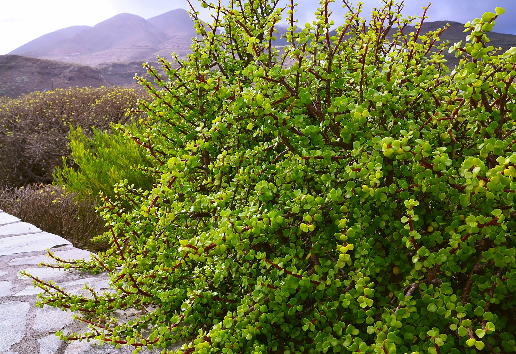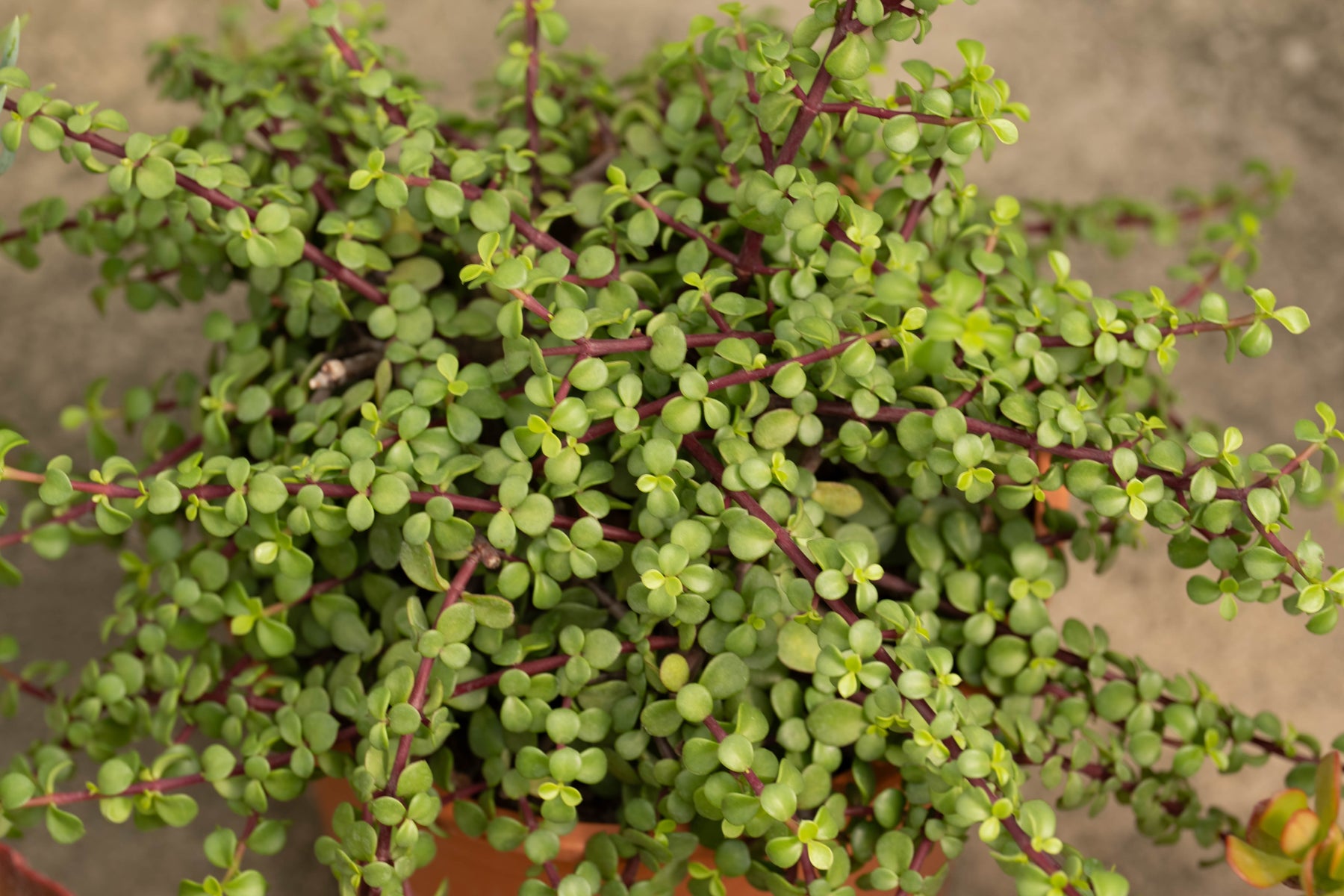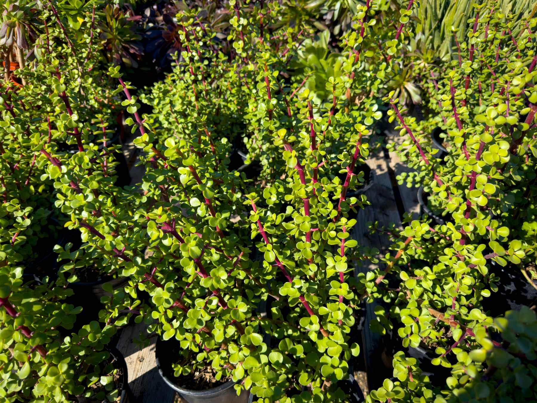 Portulacaria afra, commonly known as Elephant’s Food, is a hardy, evergreen succulent shrub valued for its small, round, fleshy green leaves and reddish stems. Native to South Africa, this drought-tolerant plant is widely used in water-wise landscapes, containers, bonsai, and as a low hedge or accent plant. Its compact growth habit and clean appearance make it suitable for both modern and traditional garden designs. Elephant’s Food is also known for its resilience, thriving in hot, dry conditions with minimal maintenance.