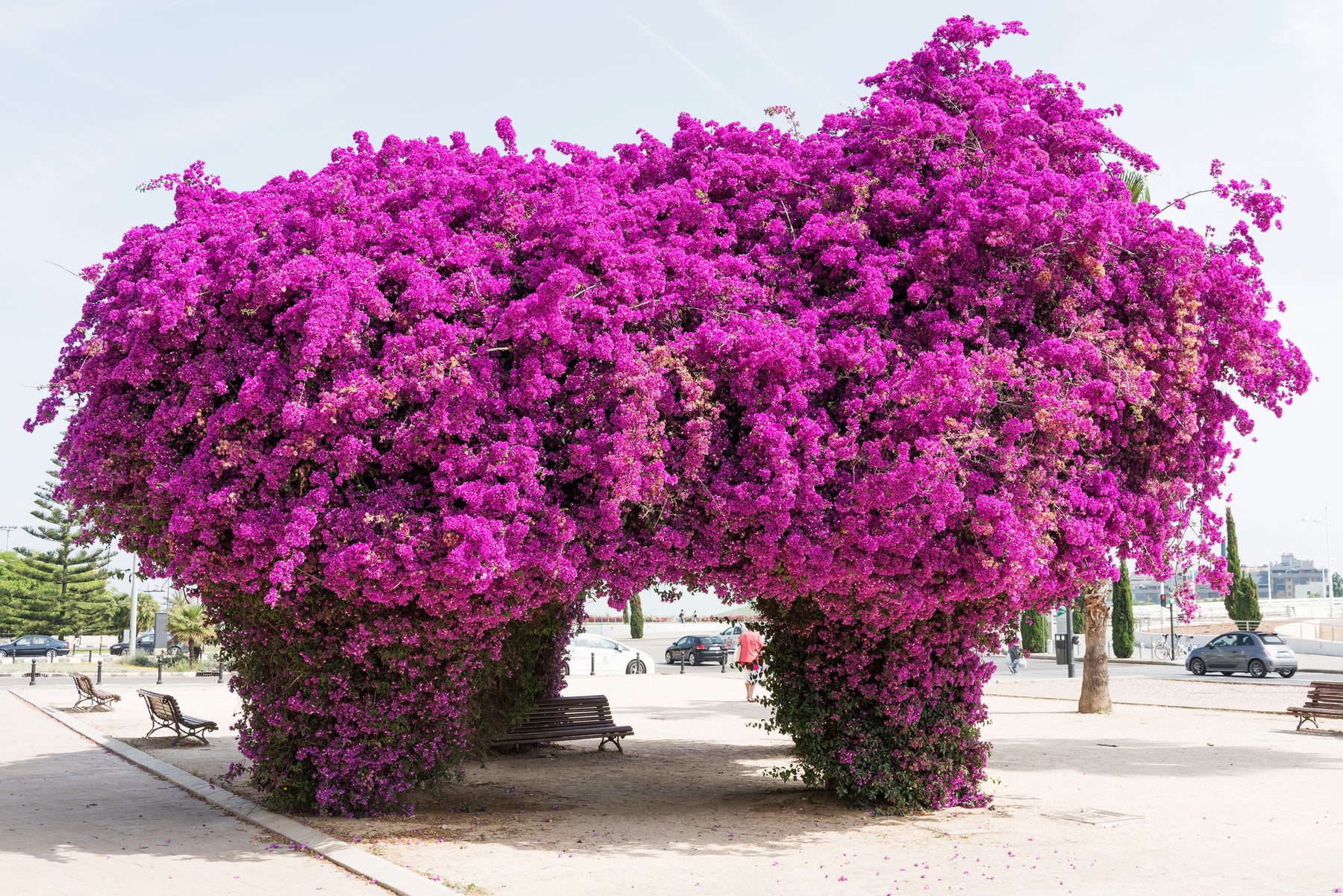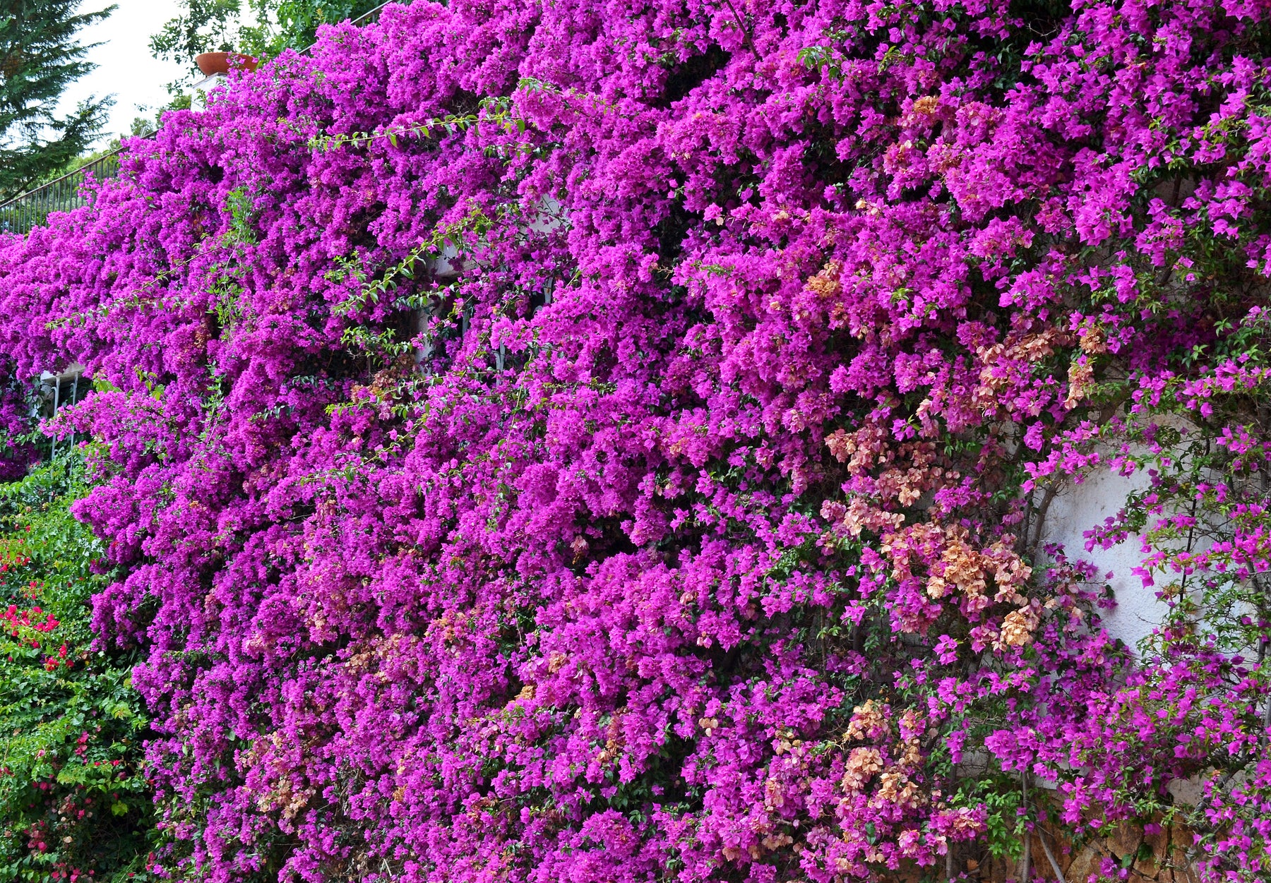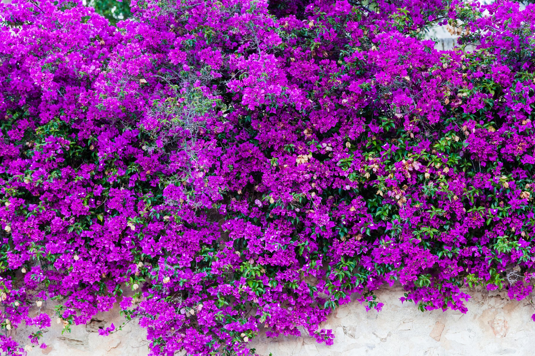 Purple Bougainvillea brasiliensis Vine is a vigorous, evergreen climbing vine valued for its intense purple bracts and long-lasting flowering display. Blooming repeatedly from spring through fall, the vibrant color creates a dramatic visual impact against walls, fences, trellises, and pergolas. The dense growth habit and thorny stems make it effective for coverage, screening, and vertical accents. Highly tolerant of heat, drought, and coastal conditions, this bougainvillea is a bold, low-maintenance choice for warm-climate landscapes.