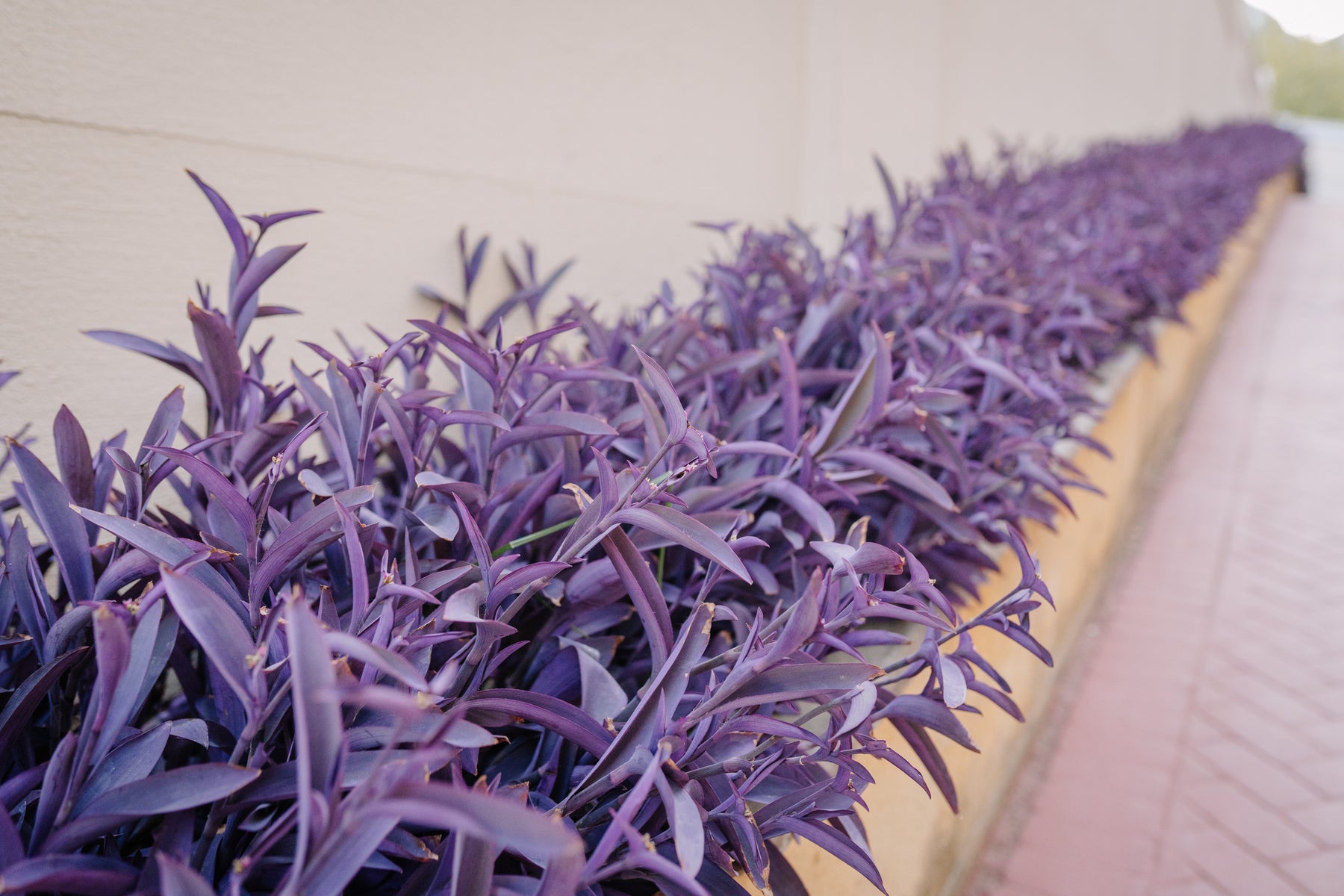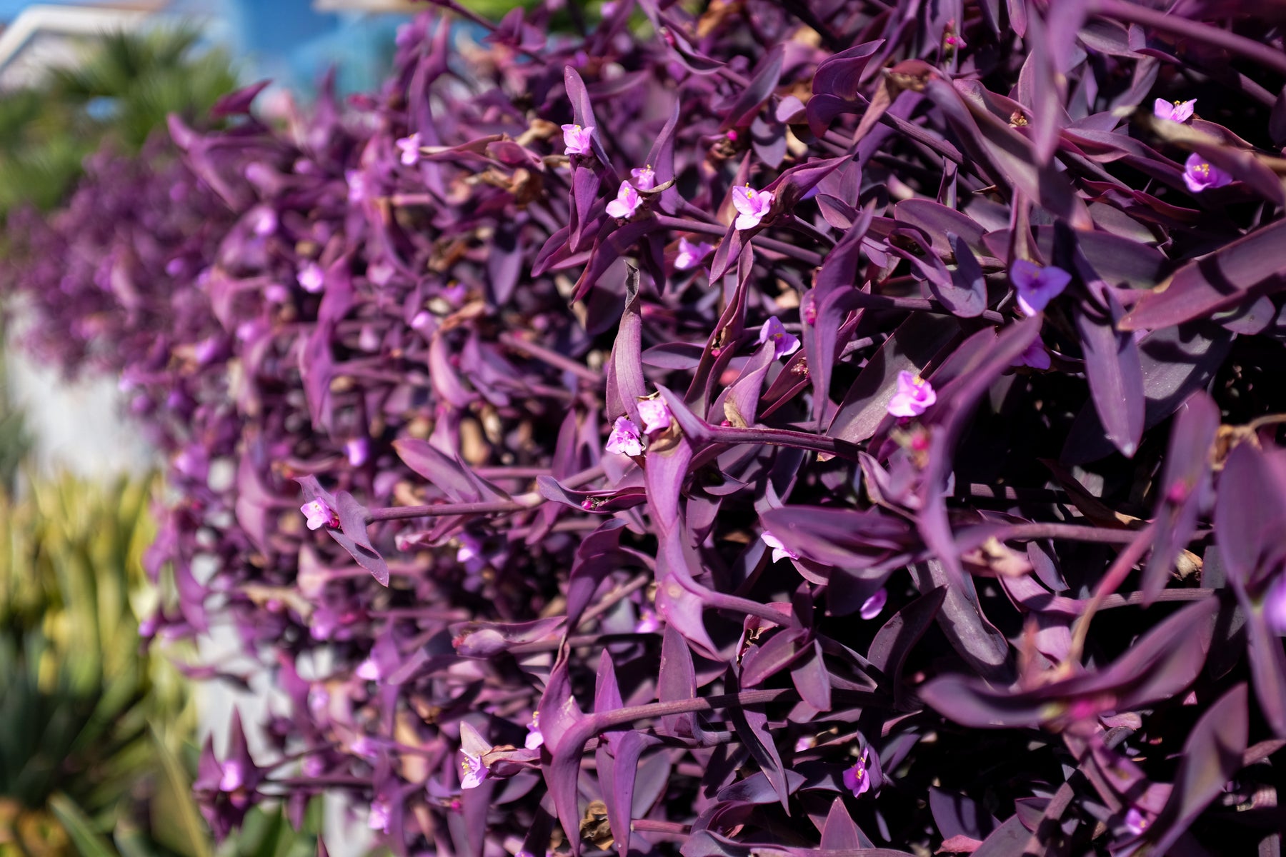 Tradescantia pallida 'Purple Heart' is a striking evergreen perennial valued for its deep purple, trailing foliage and small pink flowers. The vibrant leaf color intensifies in full sun, making it a popular choice for groundcover, borders, hanging baskets, and container plantings. Fast growing and easy to maintain, this plant spreads quickly to create dense coverage and adds bold color contrast to both modern and tropical landscape designs.